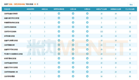 據(jù)米內(nèi)網(wǎng)MED中國藥品審評數(shù)據(jù)庫2.0數(shù)據(jù),截至目前,除了已經(jīng)通過一致性評價的注射用阿奇霉素,國家藥監(jiān)局還接收到化藥注射劑一致性評價申報29個,涉及14個品種、10家企業(yè)。