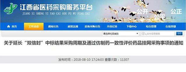 8月10日,江西省發(fā)布《關(guān)于延長“雙信封”中標(biāo)結(jié)果采購周期及通過仿制藥一致性評價藥品掛網(wǎng)采購事項的通知》,對通過一致性評價的藥品采購做出了政策支持: