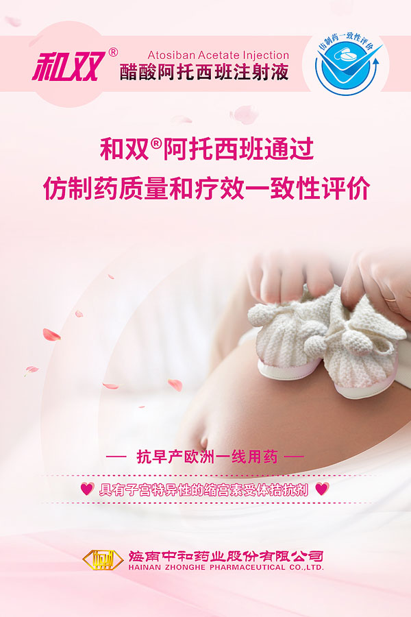 和雙于2013年獲批早產(chǎn)適應癥,是國內(nèi)首家獲得阿托西班批準文號的藥品,它在受體水平對縮宮素產(chǎn)生競爭性抑制作用,降低子宮的收縮頻率和張力,有效減少子宮收縮和延遲早產(chǎn)。和雙?國內(nèi)上市以來已幫助廣大早產(chǎn)孕婦推遲即將來臨的早產(chǎn)、延緩分娩,為胎兒促胎肺成熟贏取時間,從而使更多家庭迎接到了健康寶寶的誕生。因此,國內(nèi)外指南一致推薦和雙?(阿托西班)治療早產(chǎn)。