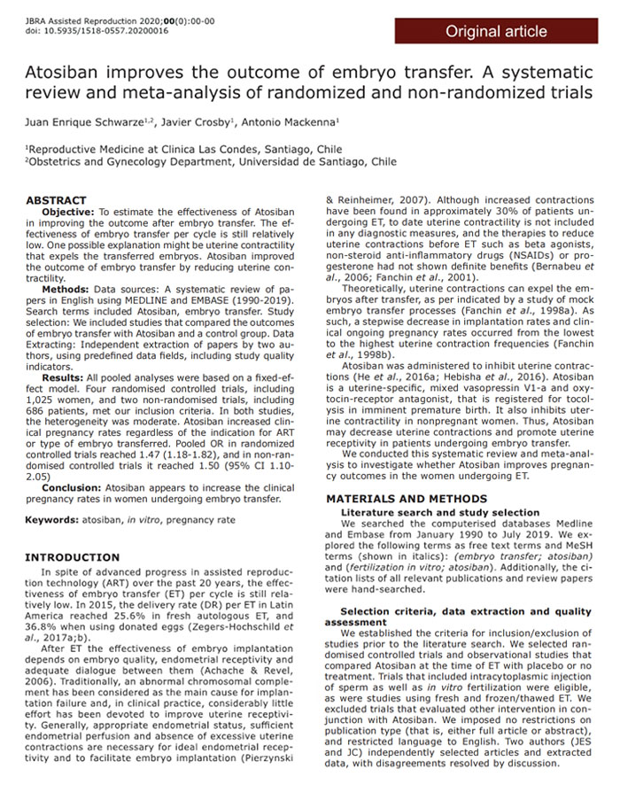 結(jié)論:阿托西班似乎可提高接受胚胎移植婦女的臨床妊娠率。