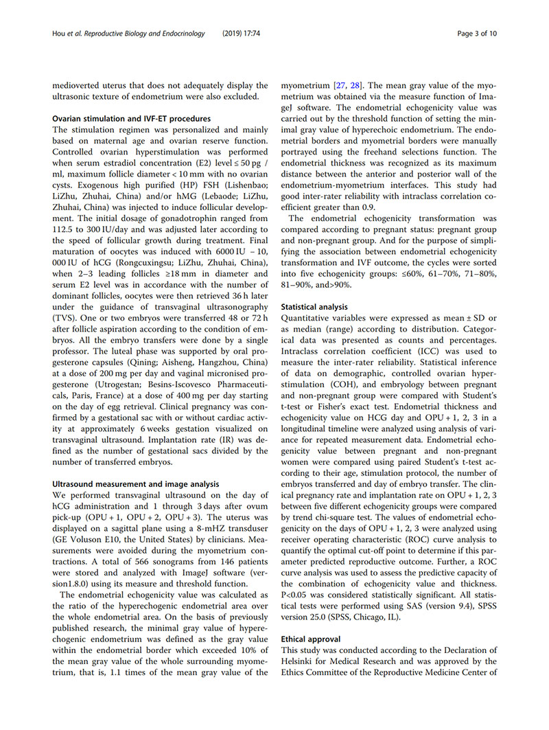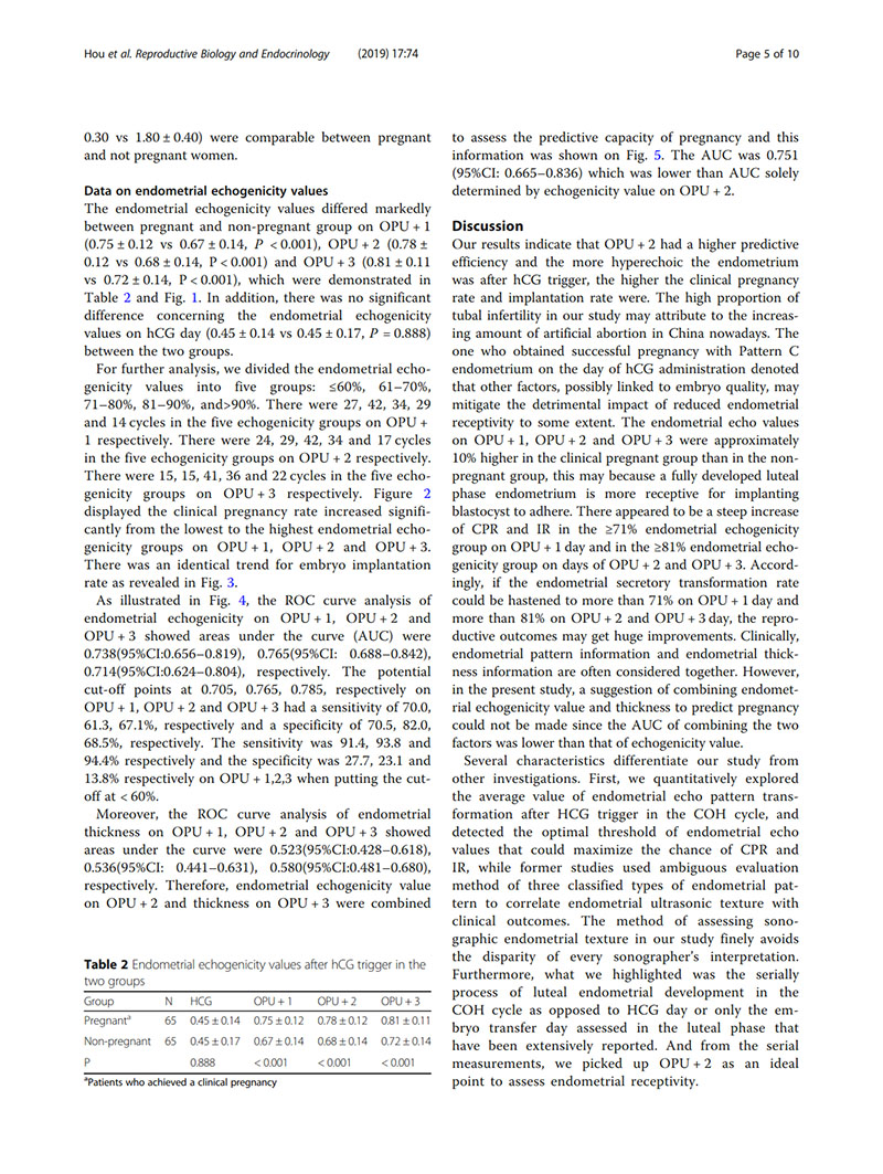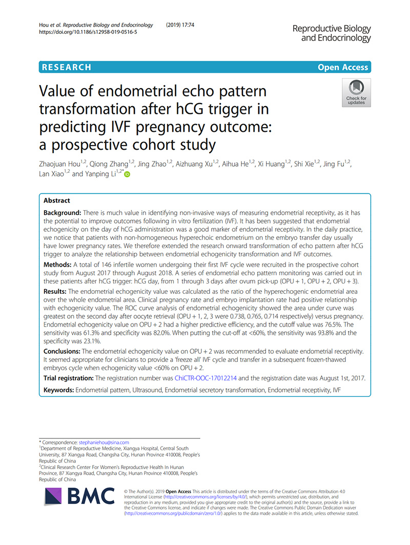 hCG觸發(fā)的子宮內膜回聲改變對預測IVF妊娠結局的價值:前瞻性隊列研究