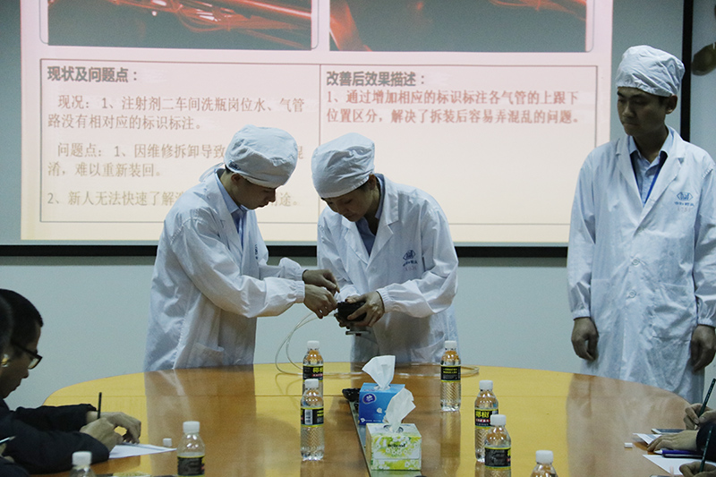 討論出火花,實踐出真知。固體制劑車間的表演可謂視亮點不斷,將班前會、流程圖、車間現(xiàn)場全部都搬到了會議廳,生動有趣的給我們展示了“物品合理布局”對操作的合規(guī)性、合理性的意義。