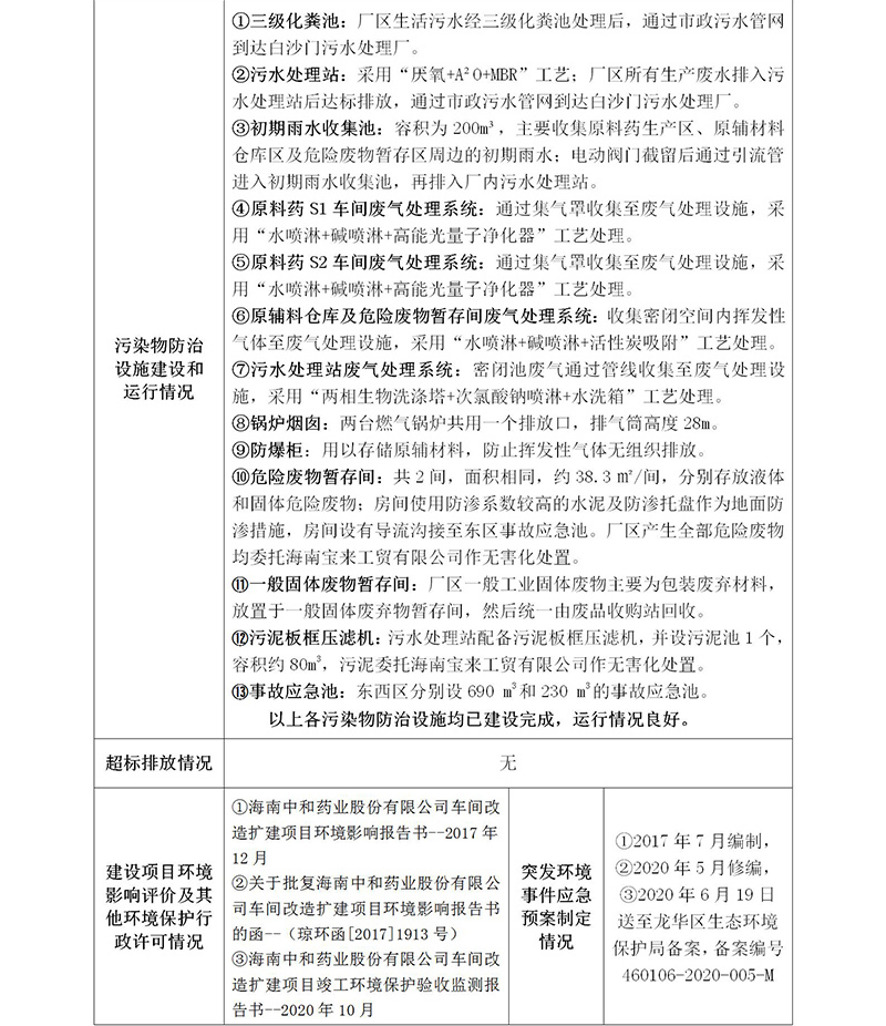 海南中和藥業(yè)--2021年海口市重點(diǎn)排污單位環(huán)境信息公開(kāi)表