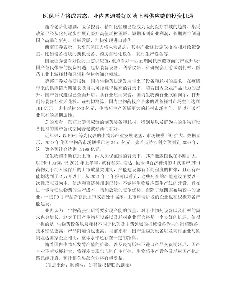醫保壓力將成常態,業內普遍看好醫藥上游供應鏈的投資機遇